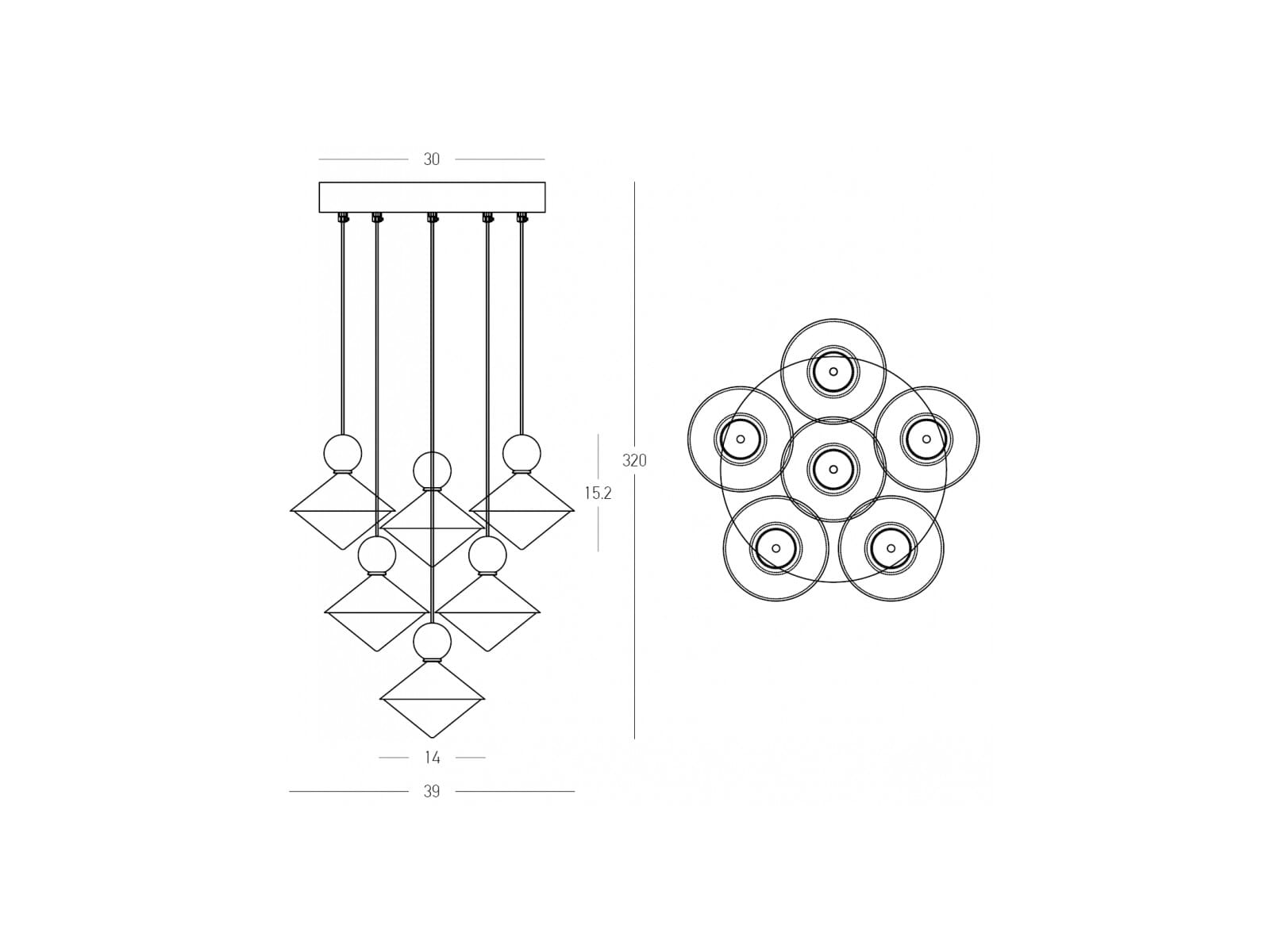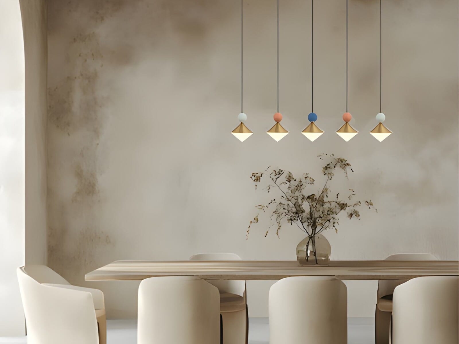 Mit einem Trio von konischen Schirmen, die in unterschiedlichen Höhen aufgehängt sind und jeweils mit einer bunten Keramikkugel akzentuiert sind, verleiht Lumetra jedem Interieur einen verspielten und doch raffinierten Touch. Die integrierte LED-Technologie strahlt ein warmes, einladendes Licht aus und ist damit ideal für die Beleuchtung von Essbereichen, Wohnzimmern oder Eingangsbereichen. Mit ihrem einzigartigen Design und der harmonischen Kombination von Materialien ist Lumetra sowohl eine funktionale Lichtquelle als auch ein faszinierender Blickfang.
