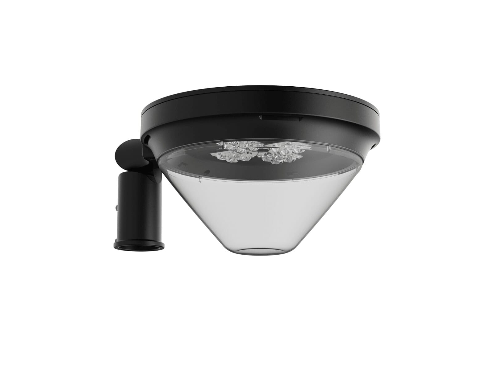 Sie ist aus druckgeformtem Aluminium mit einem transparenten PC-Diffusor gefertigt, bietet eine hohe Schlagfestigkeit (IK10) und ist in den Varianten CRI70 und CRI80 für eine verbesserte Farbwiedergabe erhältlich. Die Leuchte verfügt über einen werkzeuglosen Zugang zu ihrem Gerätefach und eine Wartungsplatte, die den Normen ZhagaBook 13 und 15 entspricht und eine einfache Wartung ermöglicht. Die verstellbare Halterung unterstützt sowohl die seitliche als auch die Mastaufsatzmontage an Masten mit einem Durchmesser von 48 bis 76 mm. Optionales Zubehör ist erhältlich, um die Blendwirkung zu reduzieren. Die Leuchte ist mit den Umweltdeklarationen ENEC, ENEC+, ZD4i und EPD zertifiziert, um die Einhaltung von Sicherheits- und Umweltstandards zu gewährleisten.