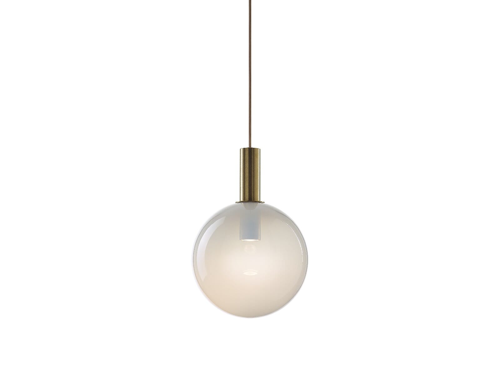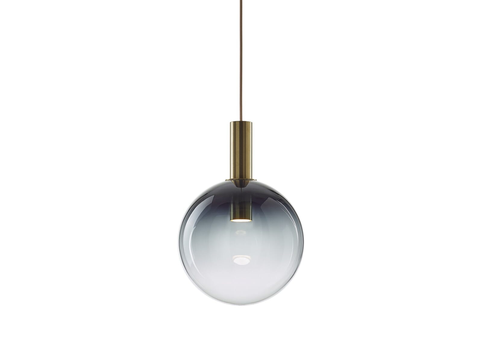 Eine mundgeblasene, rauchfarbene Kristallkugel wird von einem schlanken, gebürsteten Gold- oder Silberband zart durchzogen, sodass ein leuchtender Kern in eleganten Farbtönen durchscheinen kann. Inspiriert von raffinierten Geometrien und subtilen Farbübergängen, verleiht Seritha intimen Räumen eine poetische, ruhige Atmosphäre und einen Hauch von zeitgenössischem Luxus.